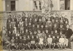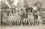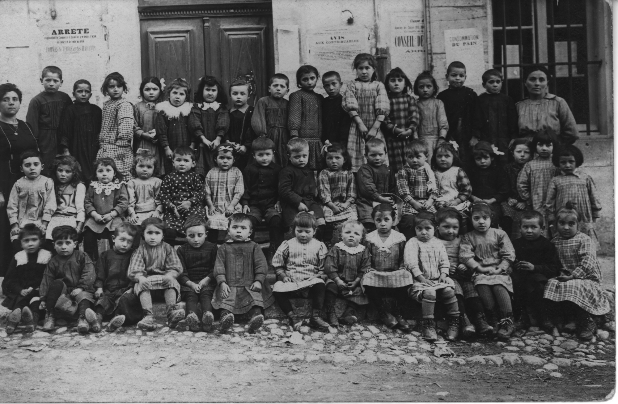 1920 Classe de petits. La photo est prise devant la porte d'entrée principale (actuellement entrée de la mairie) |