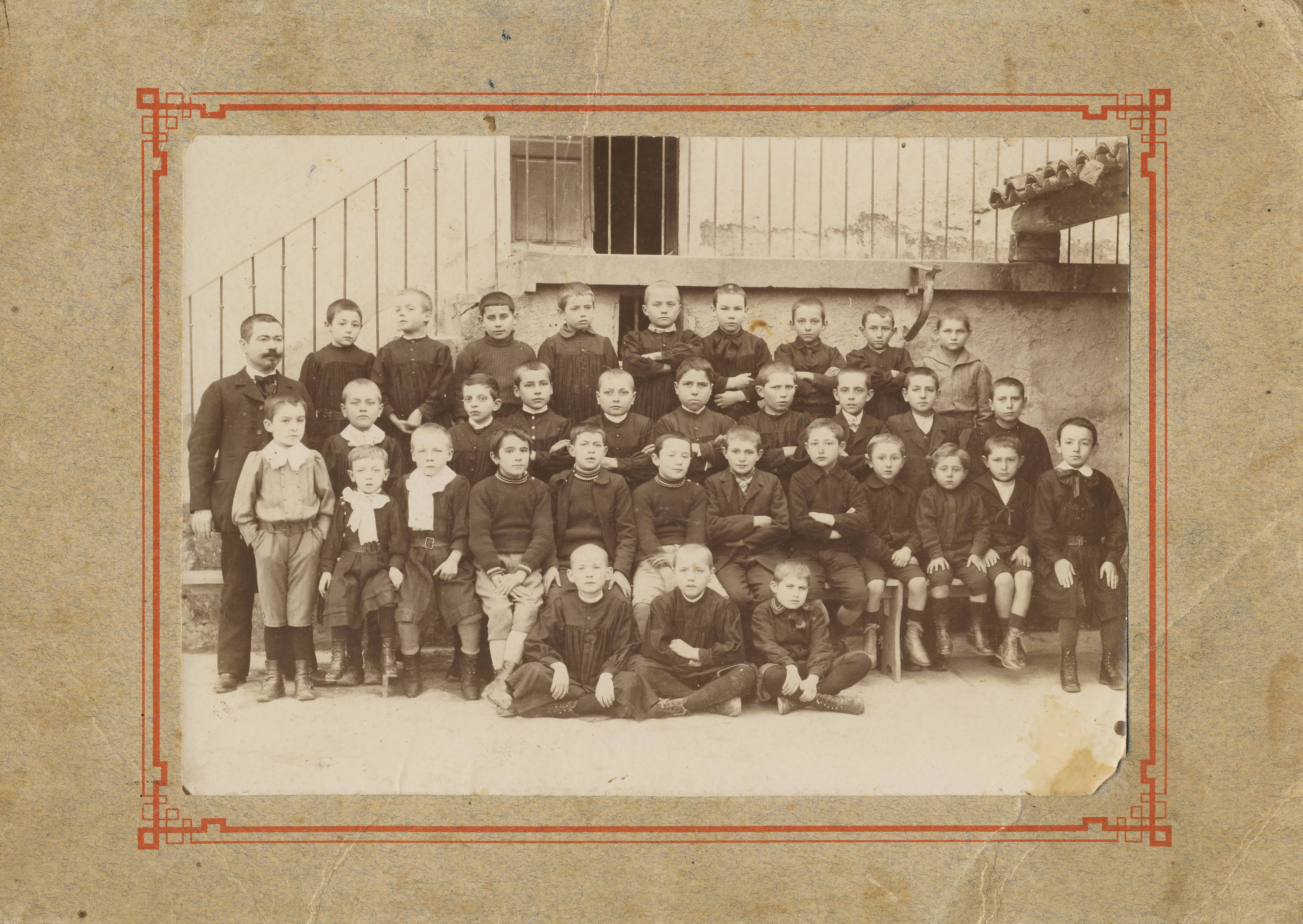 Très ancienne photo de la classe située au-dessus du moulin à huile. Texte au verso de la photo=>Cliquez ici Donnation famille Moureau |