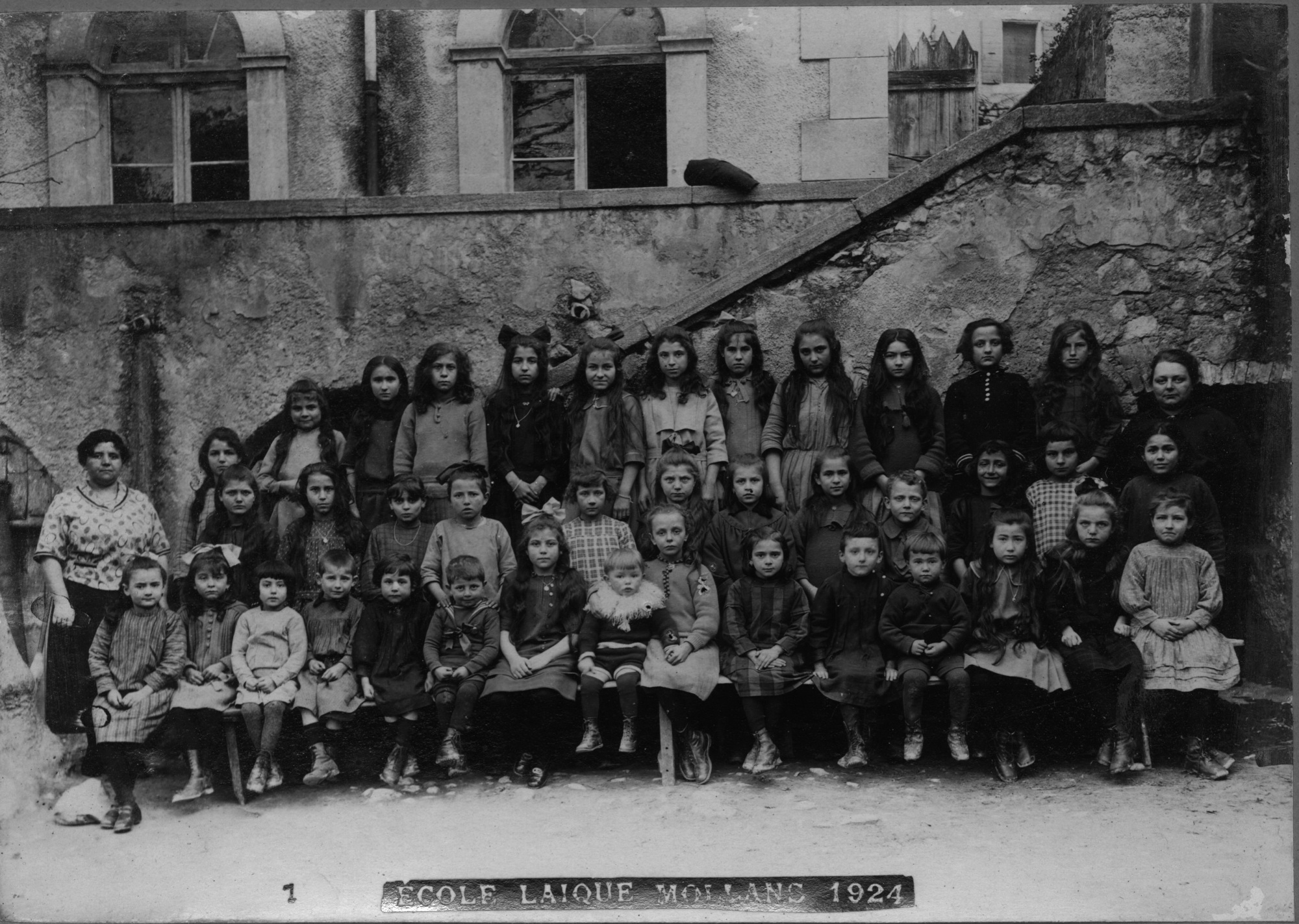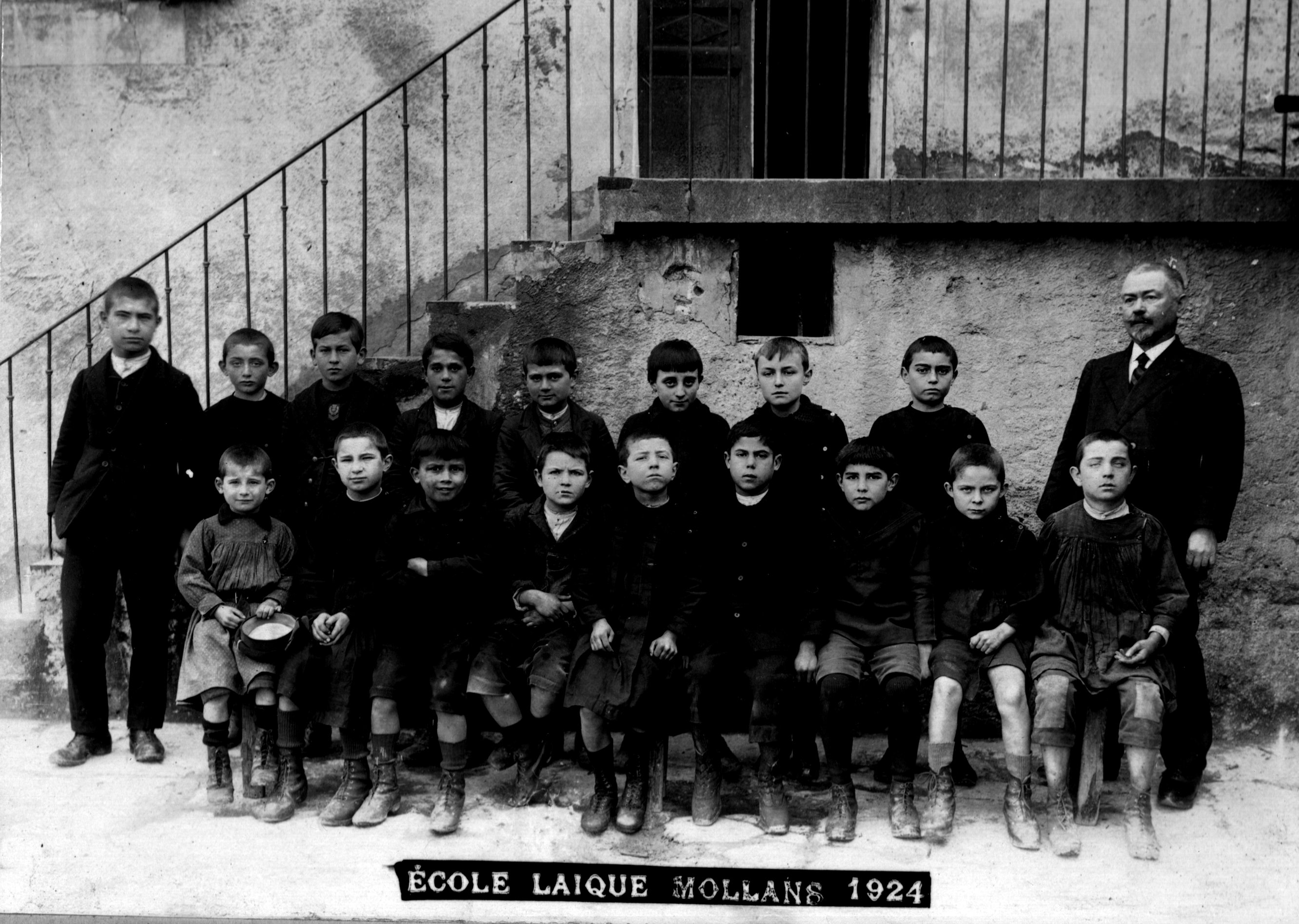 1924 "École Laïque Mollans " Les garçons étaient dans la classe située au-dessus du moulin à huile Chauvet. Instituteur ??? |