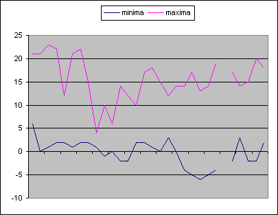 | 26/11/2001 | -2 | 17 | 2 | 0 | moyenne mini | -0,17 | °C | |||||