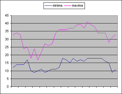 | 26/06/2002 | 18 | 34 | 5 | moyenne mini | 14,07 | °C | ||||||