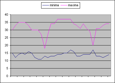 | 28/08/2002 | 13 | 31 | 5 | moyenne maxi | 31,97 | °C | ||||||