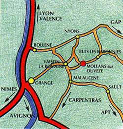 | Le pont qui enjambe l’Ouvèze, flanqué d’un coté par la célèbre fontaine au Dauphin (1793) et de l’autre par la tour de l’horloge. A voir, les Chapelles de Notre Dame du Pont et des Pénitents Blancs. La richesse de la commune fut longtemps l’agriculture traditionnelle, vers à soie, Oliviers, tilleul, Coco, Vignes (AOC) Côtes du Rhône . | ![]() |